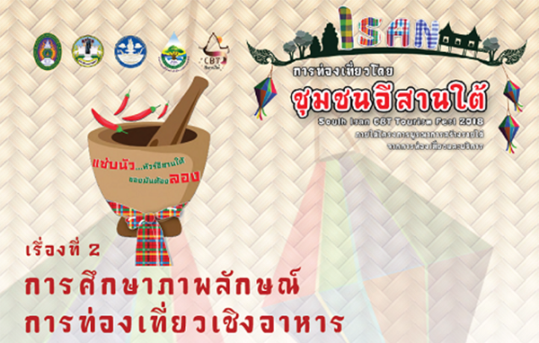 เป็นงานวิจัย ประจำปี 2561 เรื่องที่ 3 การพัฒนาเส้นทางและกิจกรรมการท่องเที่ยวเชิงอาหาร โดยมีวัตถุประสงค์เพื่อศึกษาเส้นทางการท่องเที่ยว และการท่องเที่ยวเชิงอาหารของอารยธรรมอีสานใต้ .