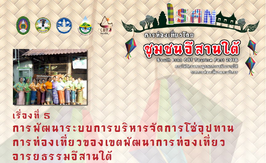 อ่านต่อ...ขอนำเสนอกิจกรรมการเปิดประสบการณ์ การท่องเที่ยวโดยชุมชนอีสานใต้ South Isan CBT Tourism Fest 2018 ภายใต้โครงการบูรณาการสร้างรายได้จากการท่องเที่ยวและบริการ.